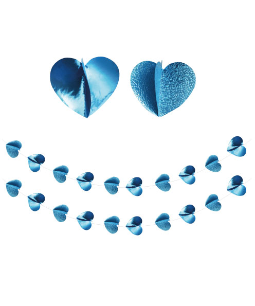 3 Boyutlu Sıralı Yıldız Süs Mavi 150 Cm 2 Parça