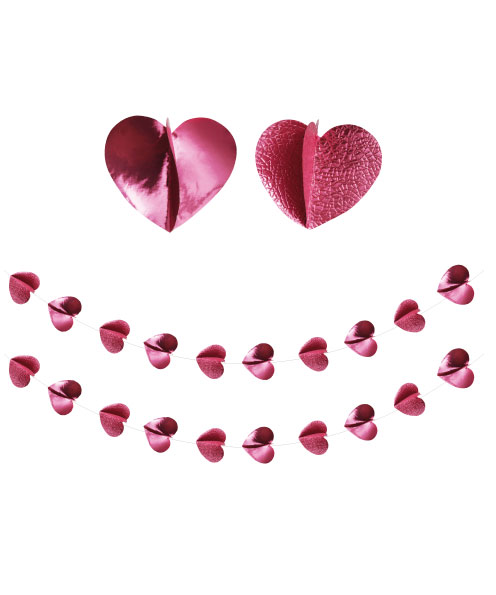3 Boyutlu Sıralı Kalp Süs Pembe 150 Cm 2 Parça