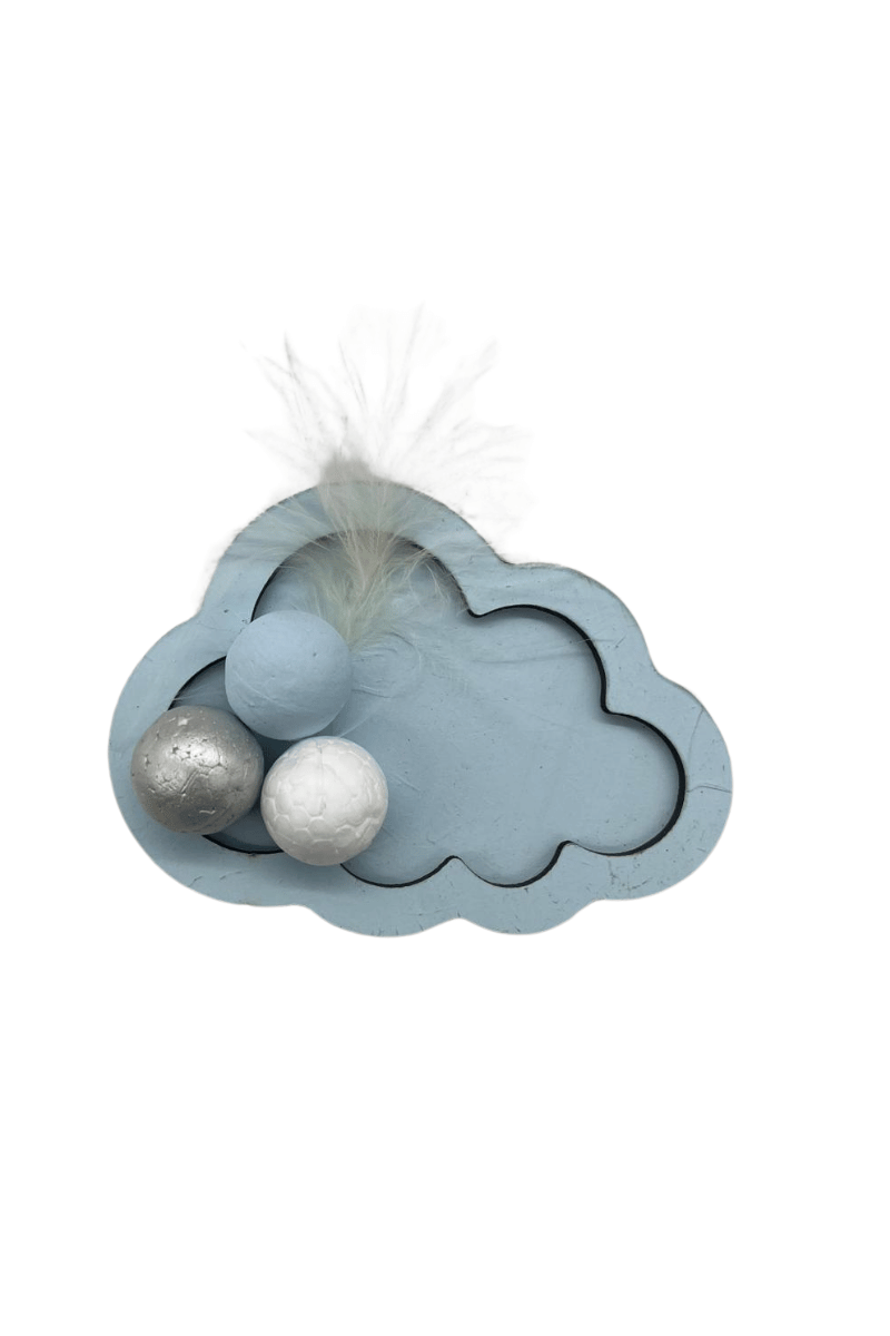 Ahşap Magnet Bulut Şekilli 25 Parça Mavi Gümüş