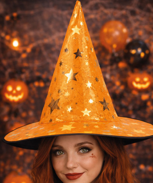 Cadı Şapkası Bez Baskılı Yıldız Desenli Turuncu