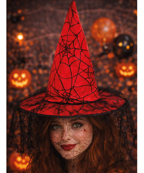 Cadı Şapkası Kadife Tüllü Baskılı Model Kırmızı