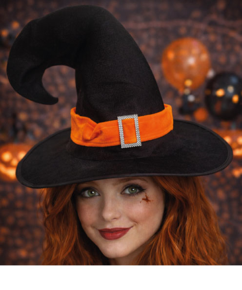 Cadı Şapkası Kadife Kemerli Ultra Lüks Turuncu