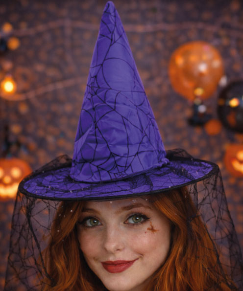 • HALLOWEEN CADI ŞAPKASI KADİFE TÜLLÜ BASKILI MODEL