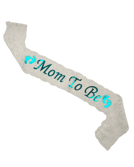 Dantelli Kuşak Mom To Be Beyaz - Mavi