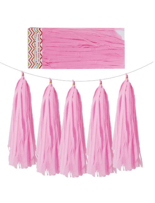Dekoratif Garland Püsküllü Süs 5 Parça Pembe