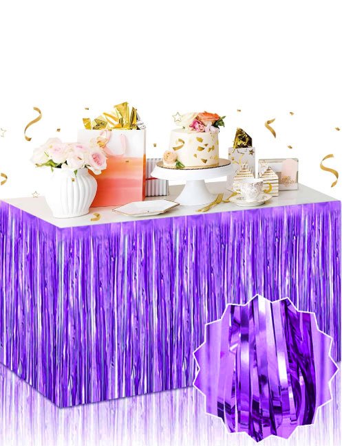 Dekoratif Püsküllü Masa Eteği Parlak Mor Renk 240x75 Cm