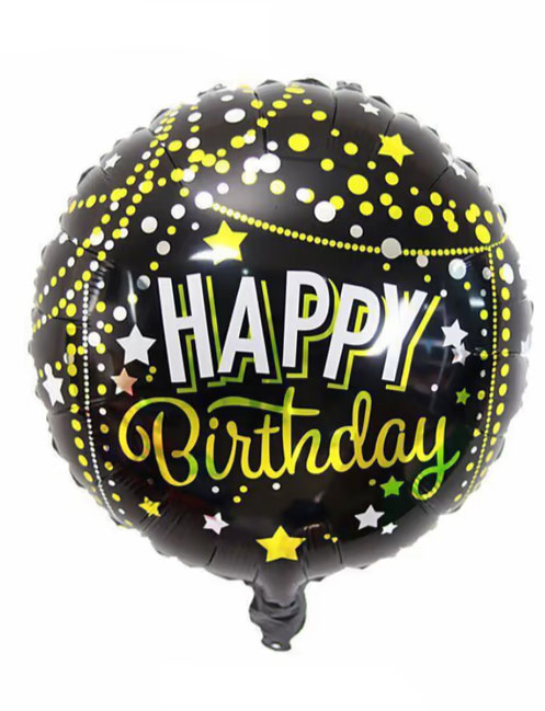 Folyo Balon Yuvarlak Happy Birthday Gold Yıldızlı 18 inch