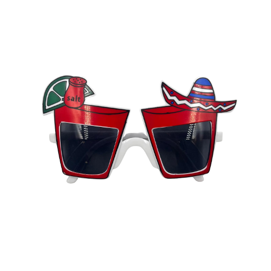 Gözlük Meksika Şapkalı Kırmızı