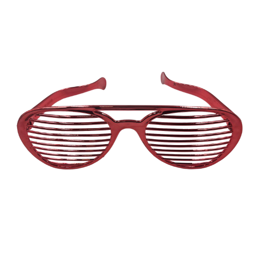 Gözlük Plastik Büyük Nostalji Panjur Desenli Kırmızı