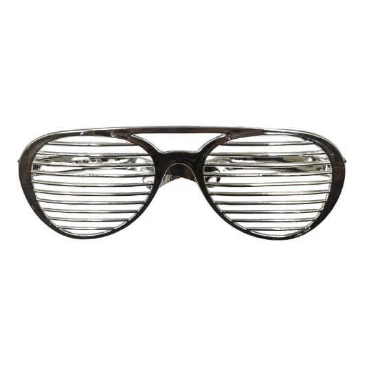 Gözlük Plastik Büyük Nostalji Panjur Desenli Gümüş