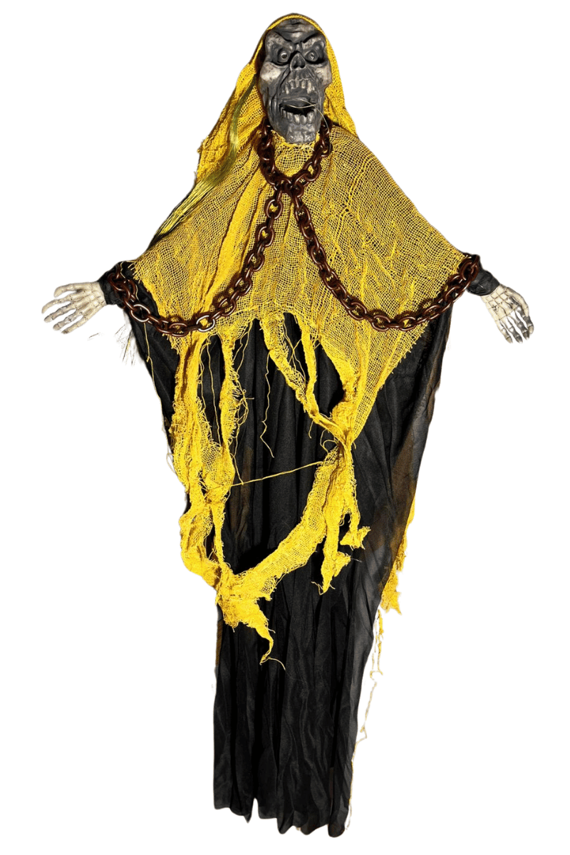 Halloween İskelet Korkuluk Zincirli 100 Cm Pilli Sarı