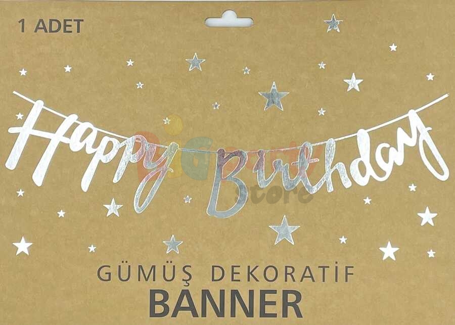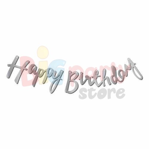 Kaligrafi Banner Happy Birthday Gümüş