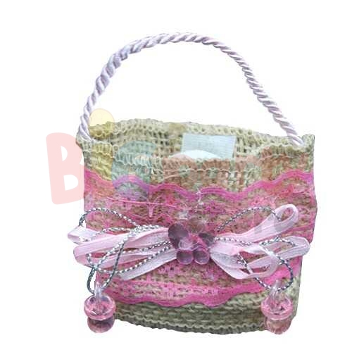 • Hediyelik Hasır Şeker Kesesi Pusetli Pembe 12'li