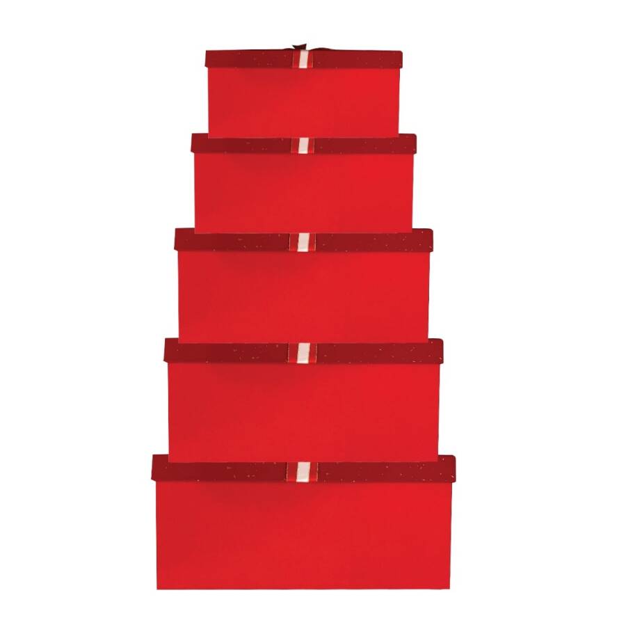 Hediyelik Kırmızı Kutu Jumbo Dikdörtgen Fiyonklu 5li