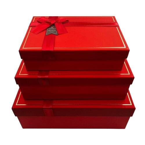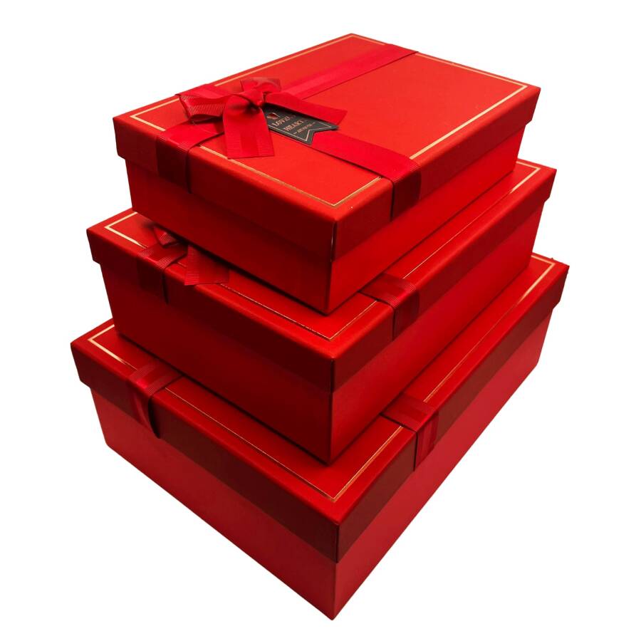 Hediyelik Kutu Dikdörtgen Fiyonklu 3 Parça Kırmızı