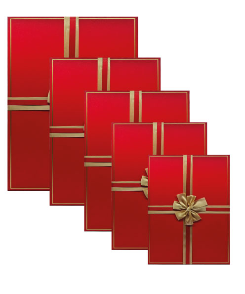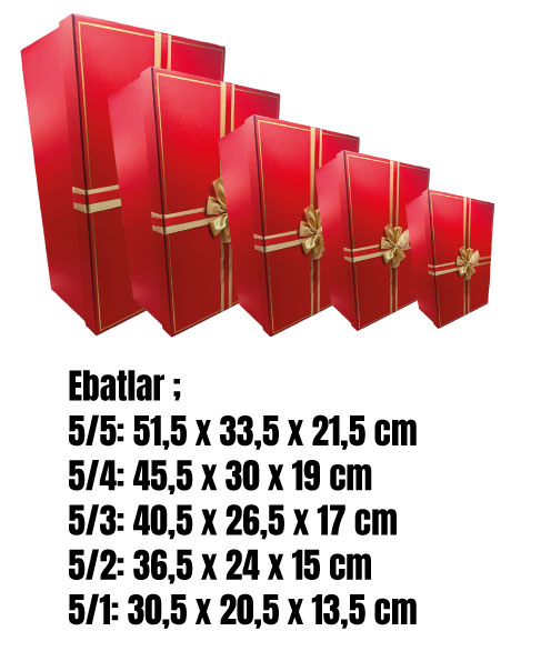 Hediyelik Kutu Raven Dikdörtgen Fiyonklu 5 Parça Simli Kırmızı