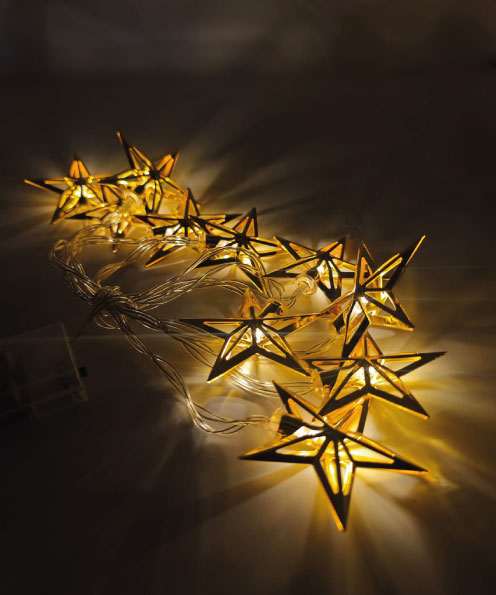 IŞIK LED YILDIZ MODEL ALTIN RENK 10 IŞIK 2 METRE PİLLİ