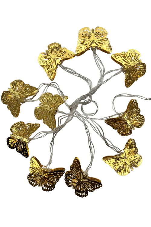 IŞIK LED KELEBEK MODEL ALTIN RENK 10 IŞIK 2 METRE PİLLİ
