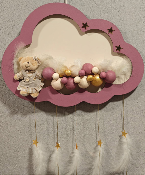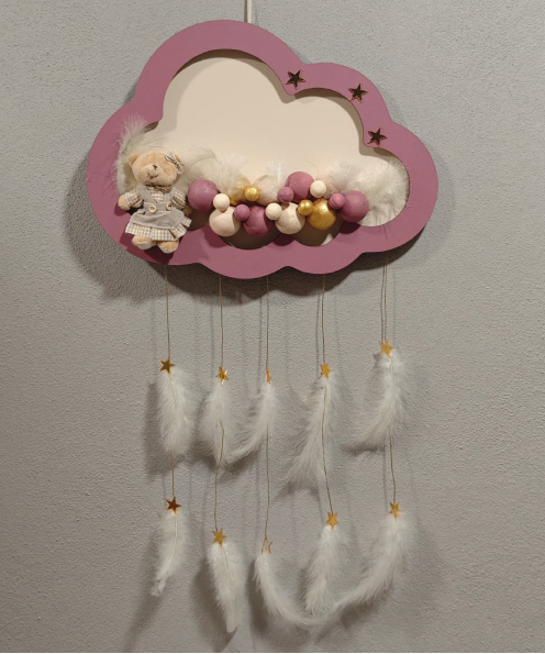 Ahşap Kapı Süsü Işıklı Bulut Model Kız Tema Mürdüm-Altın