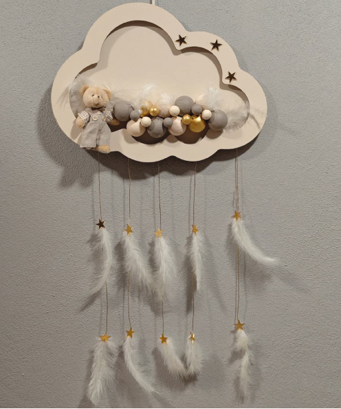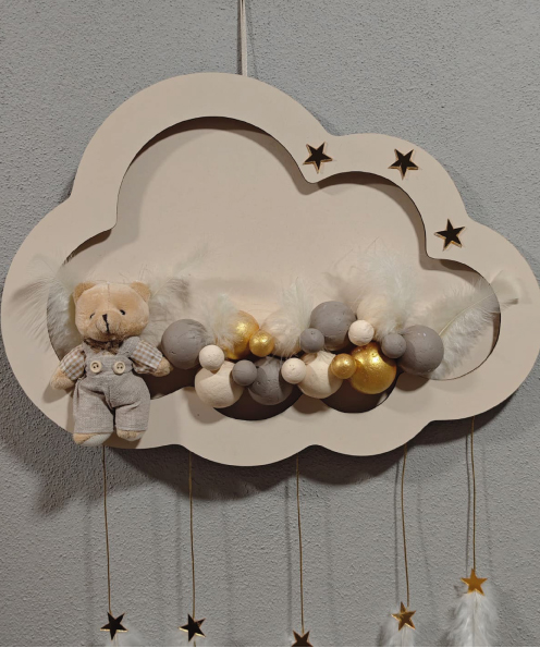 Ahşap Kapı Süsü Işıklı Bulut Model Erkek Tema Krem-Altın