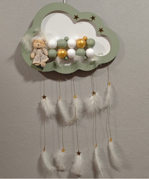 Ahşap Kapı Süsü Işıklı Bulut Model Kız Tema Yeşil-Altın