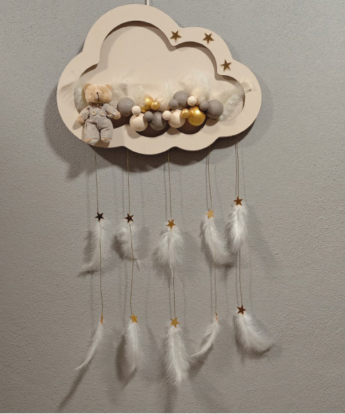 Ahşap Kapı Süsü Işıklı Bulut Model Erkek Tema Krem-Altın