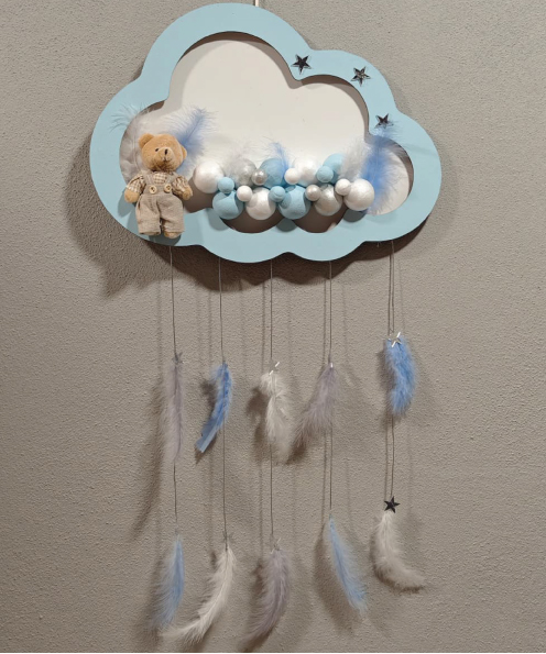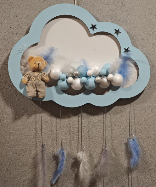 Ahşap Kapı Süsü Işıklı Bulut Model Erkek Tema Mavi-Gümüş