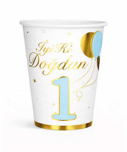 İyi Ki Doğdun 1 Yaş Erkek Gold Varaklı Bardak 6'Lı