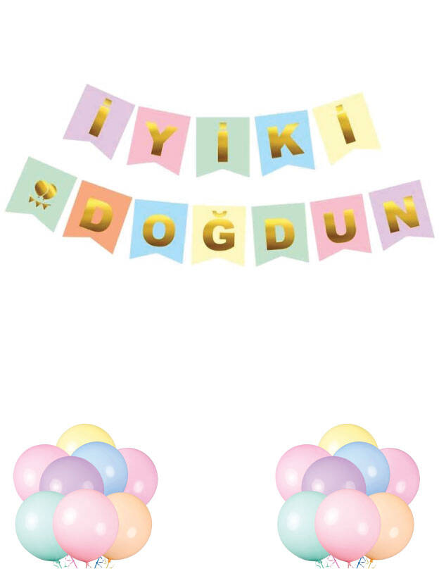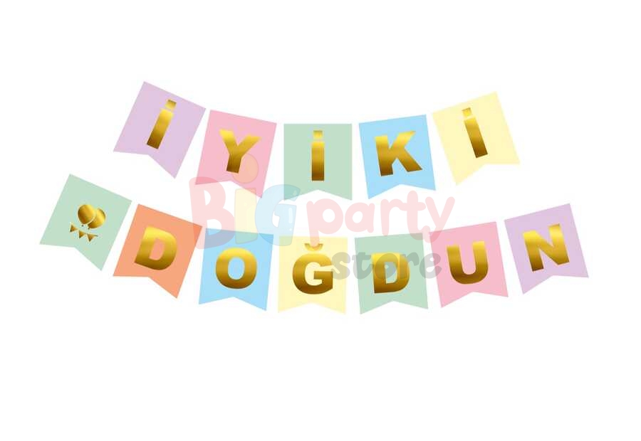 Kağıt Banner İyi Ki Doğdun Makaron Zemin Altın Varaklı