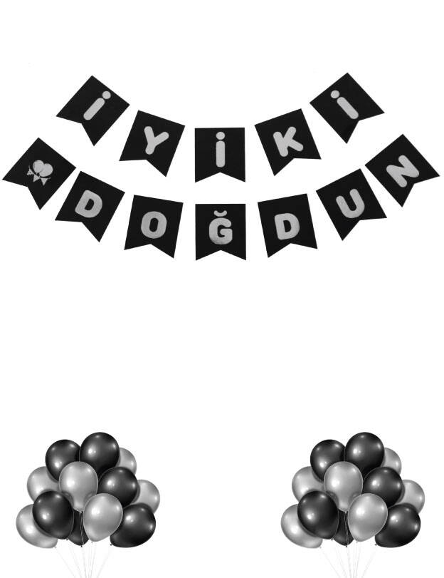 iyi ki doğdun banner, doğum günü banner siyah, gümüş varaklı banner, doğum günü afişi, siyah parti süsleri, doğum günü süsleme ürünleri, banner süsleme, iyi ki doğdun yazısı, siyah gümüş parti konsepti, doğum günü dekoru, yetişkin doğum günü süsleri