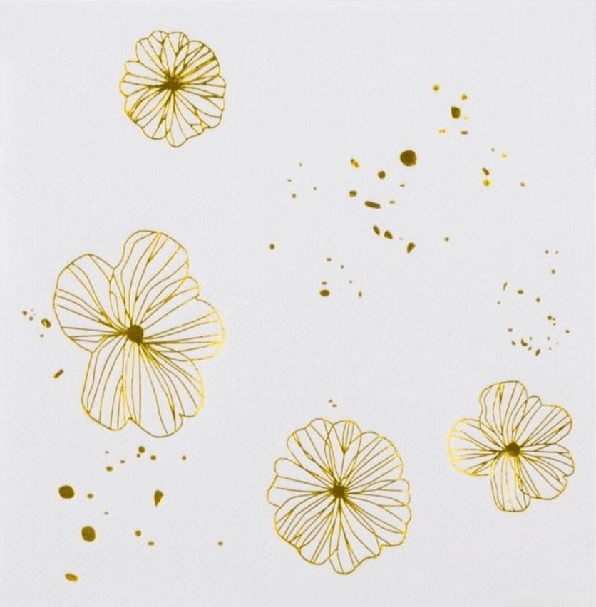 Kağıt Peçete Varaklı Çiçek Model Altın 20 Parça