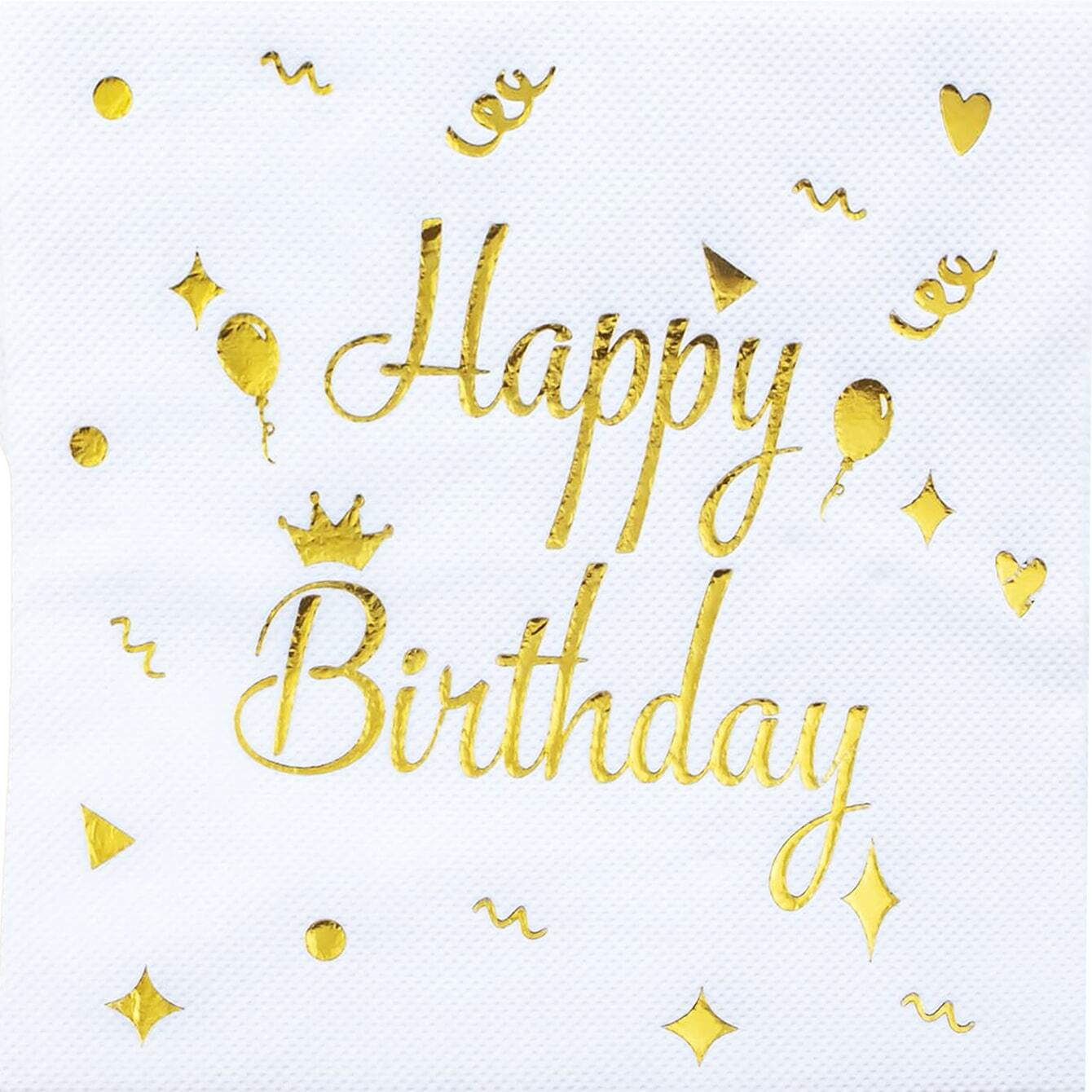 Kağıt Peçete Varaklı Happy Birthday Beyaz Altın baskılı 20 Parça