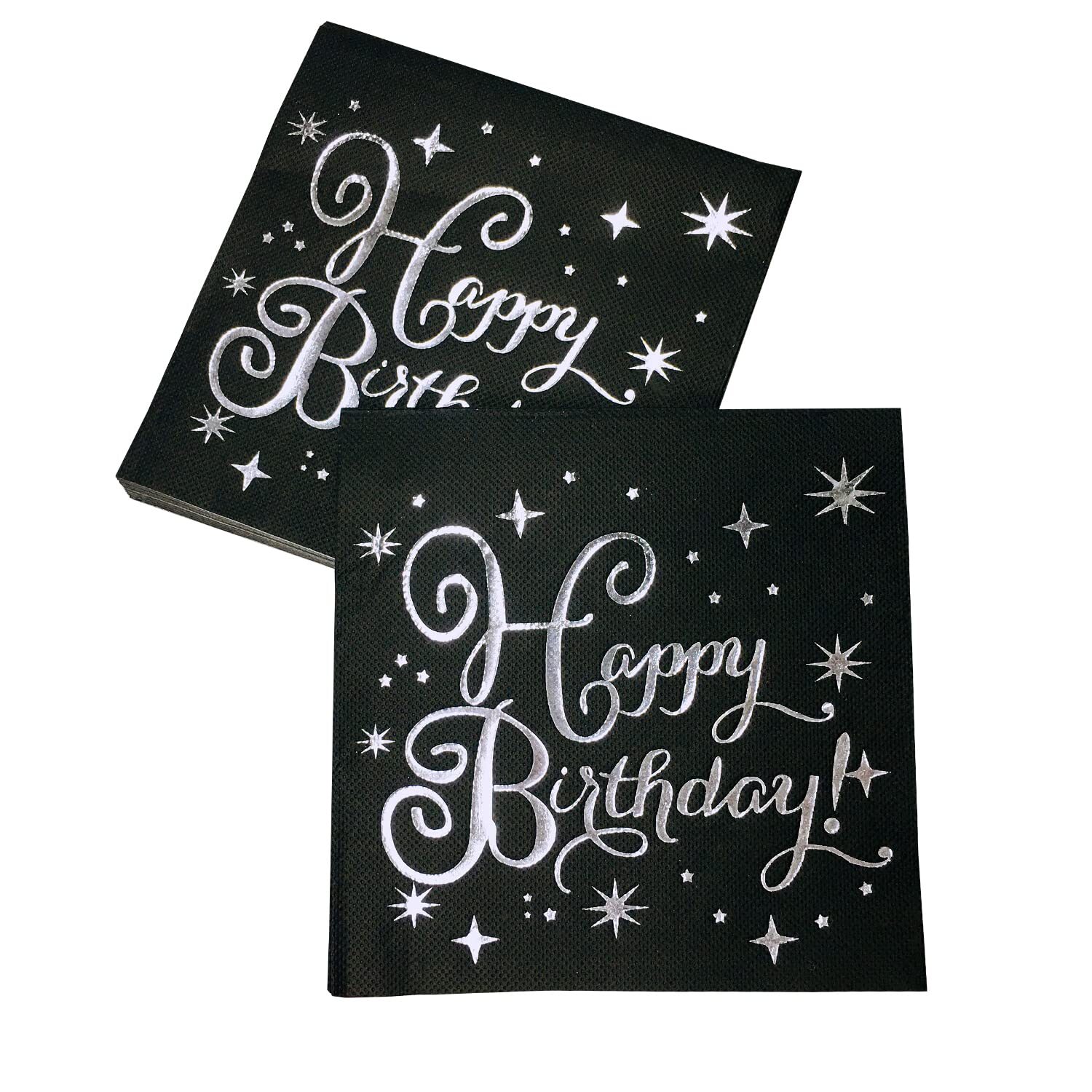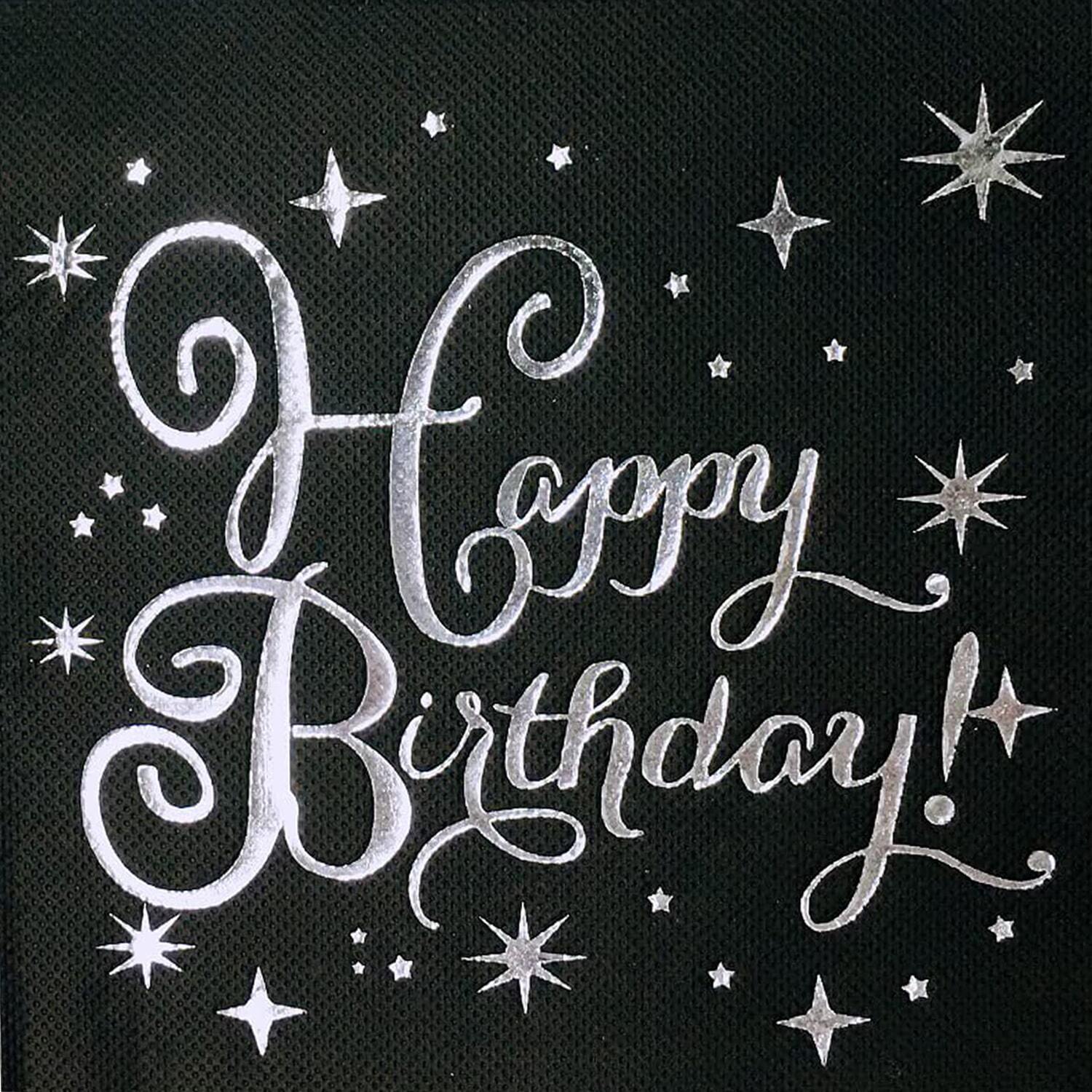 Kağıt Peçete Varaklı Happy Birthday Siyah Gümüş baskılı 20 ParçaEbat: 33 Cm x 33 Cm