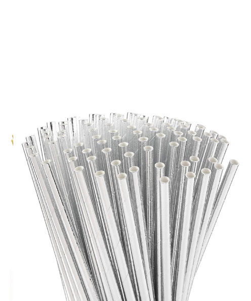 Parlak Gümüş Kağıt Pipet 24lü