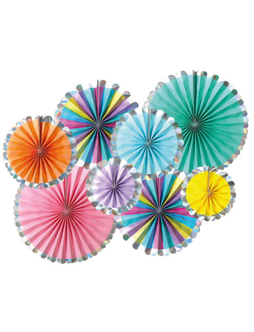 Kağıt Yelpaze Makaron Renkli Helogramlı 8 Parça
