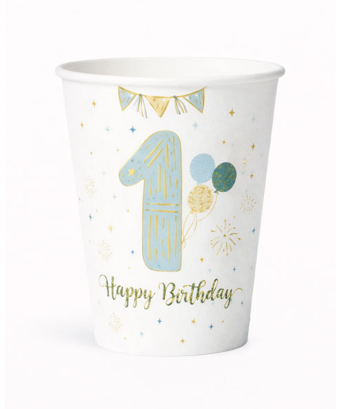 Karton Bardak Gold Varaklı 1 Yaş Mavi 6 Parça