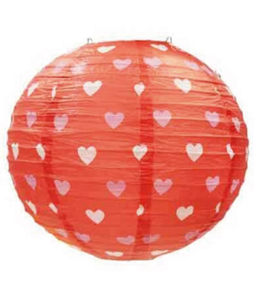 Japon Feneri Kırmızı Üzeri Kalp Baskılı 30 cm