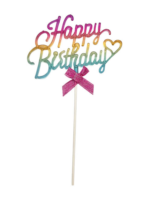 Makaron Renk Pasta Üstü Çubuklu Happy Birthday Renkli