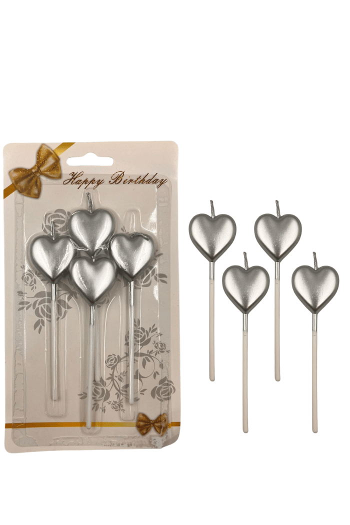 Mum Çubuklu Kalpli Set 4 Parça Gümüş