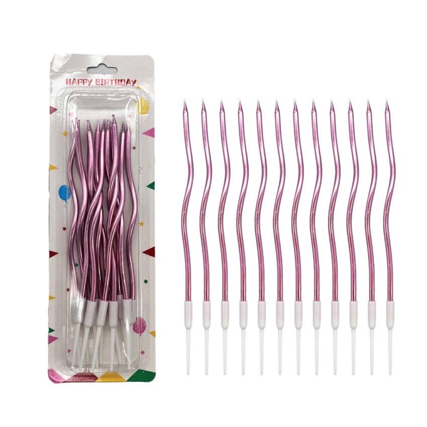 Mum İnce 16 cm Dalgalı Metalik Pembe 12 Parça
