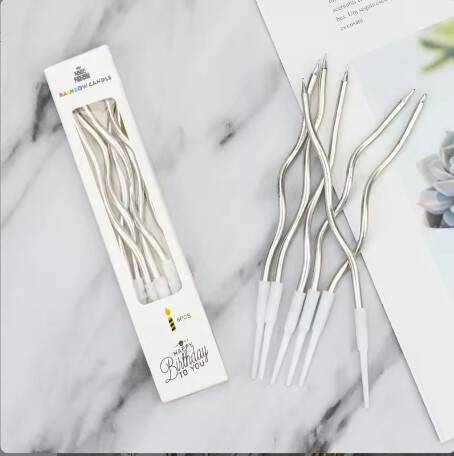 Mum İnce 16 cm Dalgalı Metalik Gümüş 12 Parça