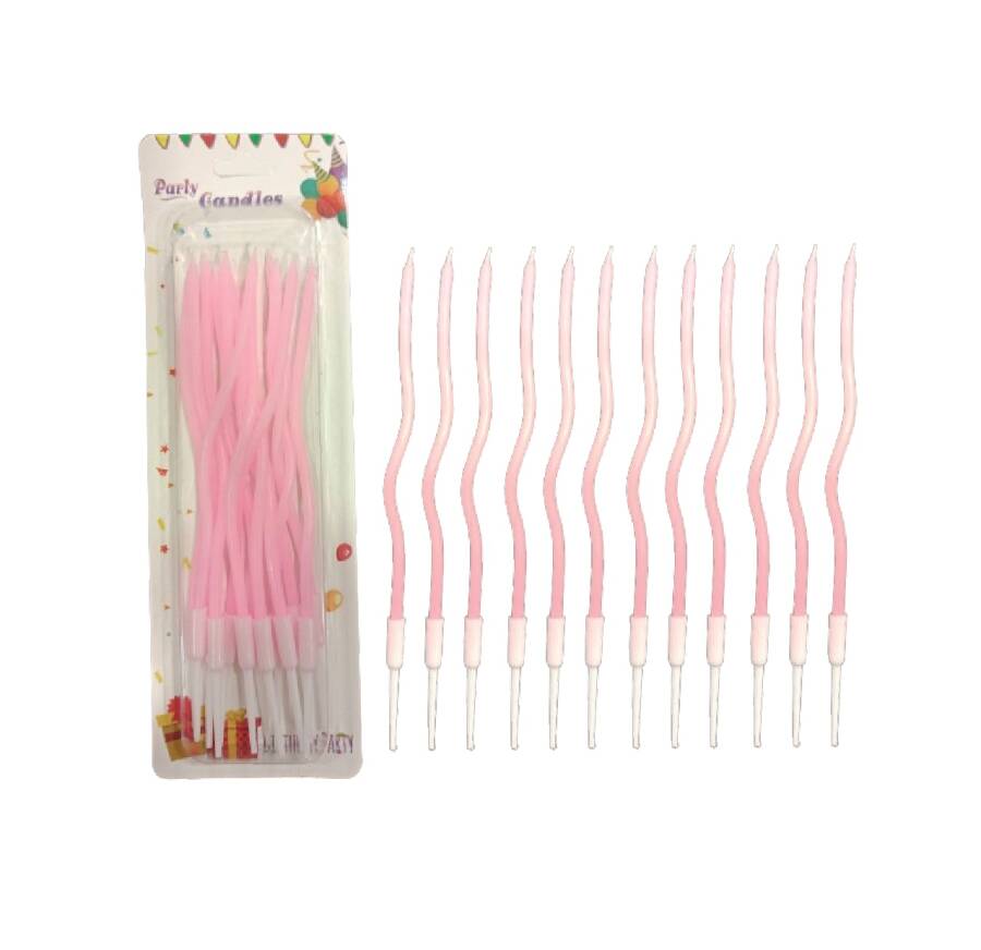 Mum İnce 16 cm Dalgalı Makaron Pembe 12 Parça