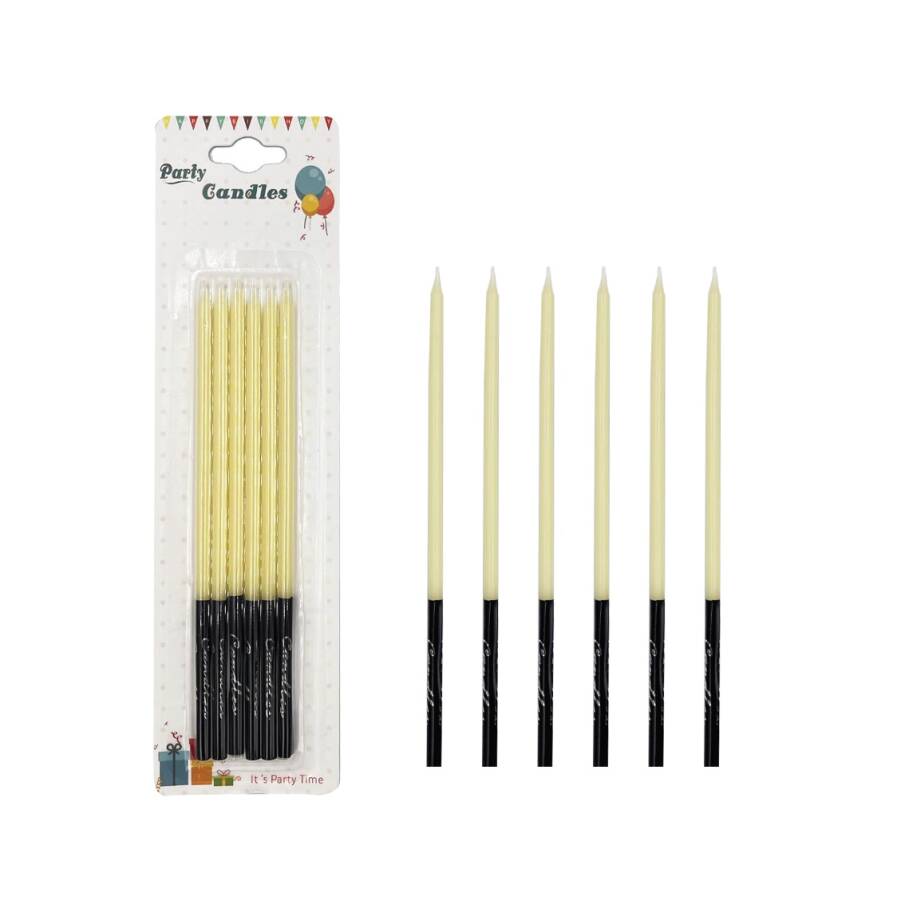 Ürünümüz 6 adet 15 cm uzunluğunda ki party mumlarından oluşmaktadır.