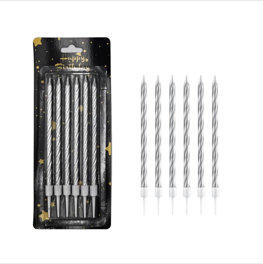 Mum İnce Spiral 6'lı Set Gümüş 14 cm