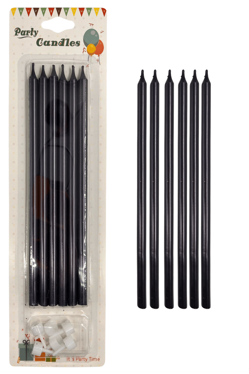 Mum İnce Uzun 20 Cm Siyah 6 Parça