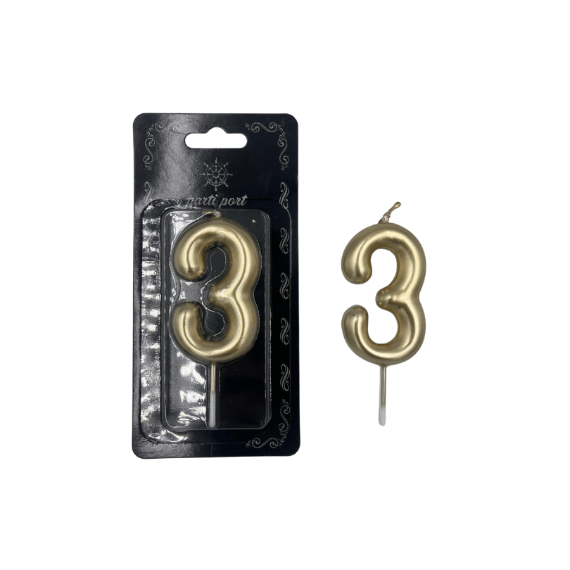 Mum Rakam Altın Lüks 3, özel günlerinizi şık ve gösterişli bir dokunuşla taçlandırmak için tasarlanmış dekoratif bir 3 numaralı mum seçeneğidir. Parlak altın görünümlü lüks tasarımı sayesinde pastanızın üzerinde ya da masa dekorasyonunda dikkat çekici bir görünüm sağlar.