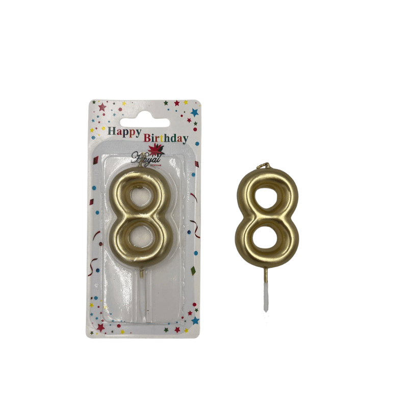 Şimdi Mum Rakam Altın Lüks 8 ile kutlamanıza güçlü bir stil ekleyin; sevdikleriniz için unutulmaz bir sürpriz hazırlayın.