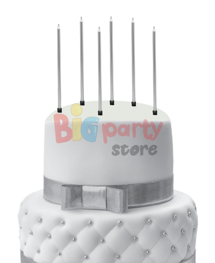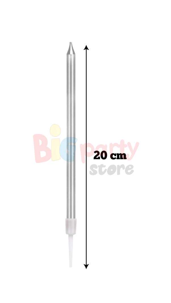 Mum İnce Uzun 20 Cm Gümüş 6 Parça