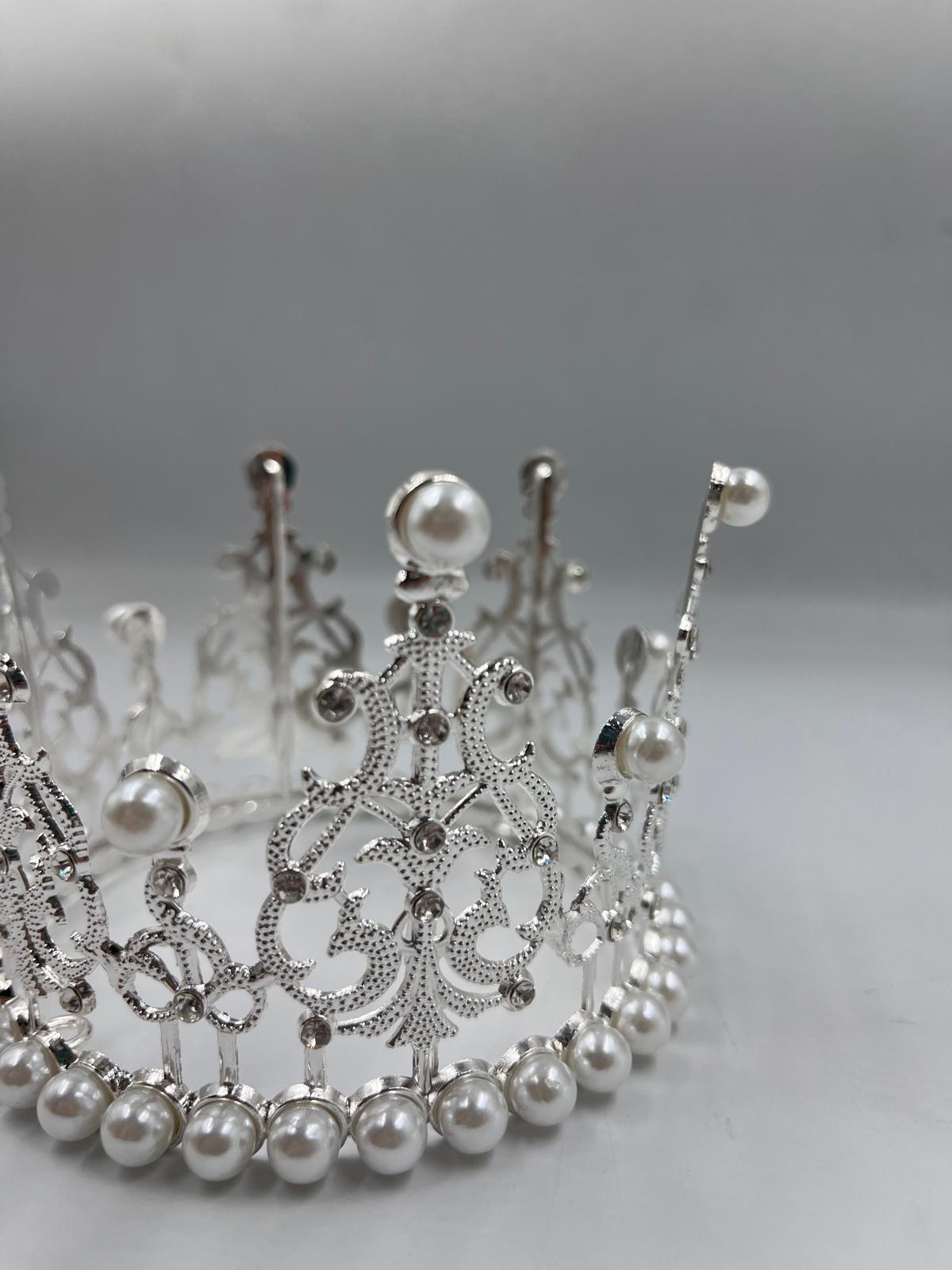 Pasta Tacı Metal İncili 11 Cm Gümüş