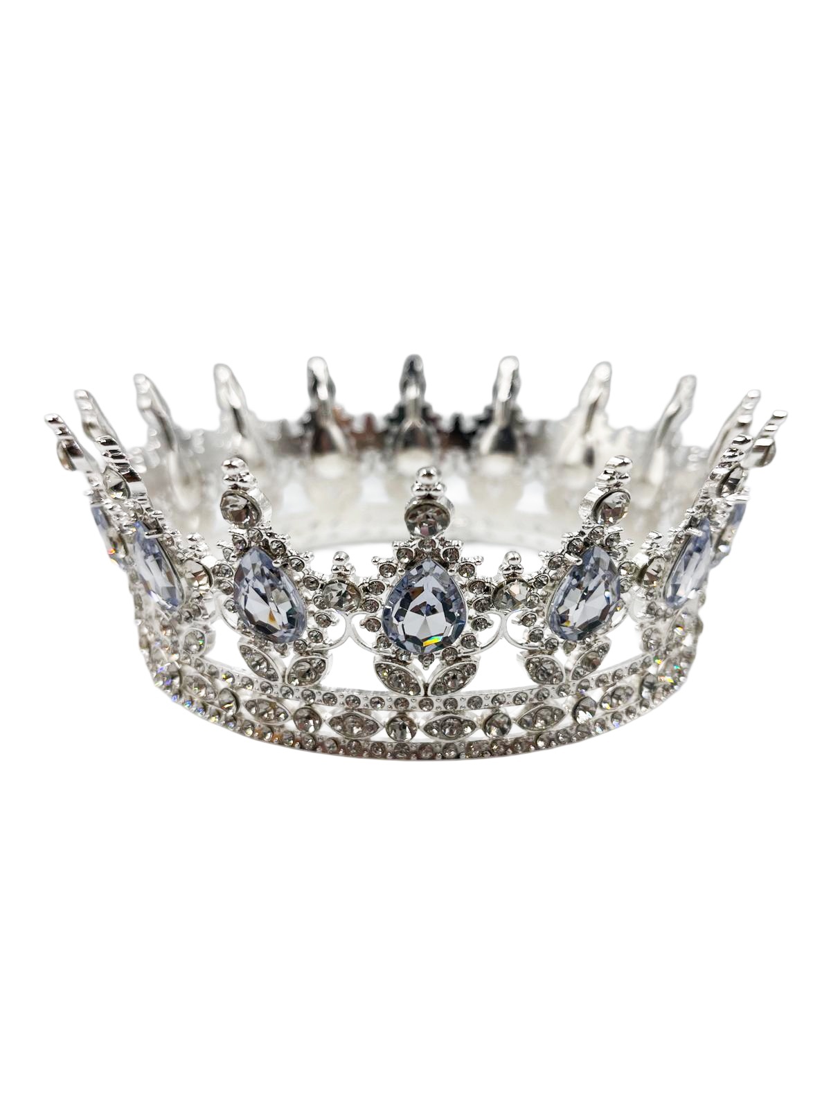 Pasta Tacı Metal Taşlı Tam Tur 12 Cm Lüks Gümüş